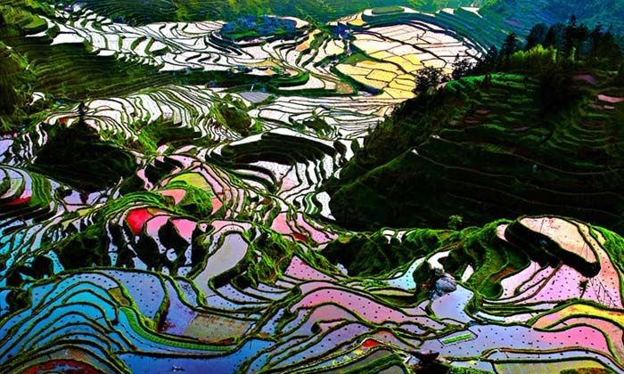 Jakarta - Manusia melakukan cocok tanam dan bertani untuk memnuhi kebutuhan pokoknya. Namun, siapa sangka beberapa garapan petani ini juga indah dipandang.