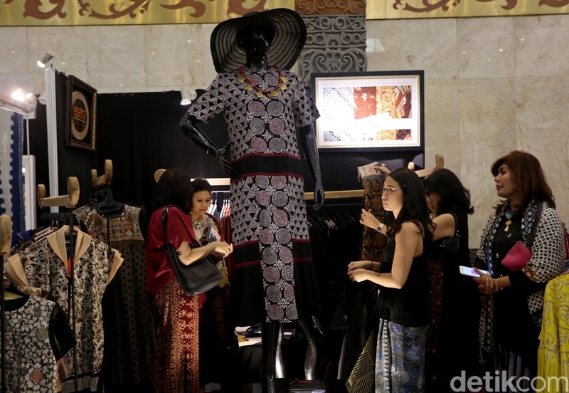 Beragam pakaian dengan motif batik memanjakan mata pengunjung yang hadir di pameran tersebut.