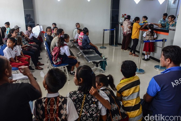 Jakarta - Para siswa ditemani orang tua mencairkan dana program Kartu Indonesia Pintar (KIP). Bantuan langsung ini dicairkan lewat Bank BRI Unit Ba'a, Pulau Rote, NTT.