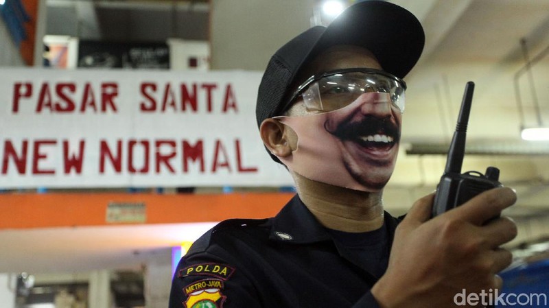 Penerapan Protokol Kesehatan di Pasar Santa Diketahui Pasar Santa menerapkan protokol kesehatan sejak PSBB transisi dimulai. Untuk masuk ke pasar ini para pengunjung dan pedagang wajib memakai masker. Bilik desinfektan juga disediakan di pintu masuk pasar. Sebanyak 375 kios di pasar ini menggunakan plastik pengaman di kiosnya. Penerapan ganjil genap juga diterapkan di pasar ini. Para pedagang yang berjualan di sini telah dibekali face shield. Rambu arah dan tempat berhenti juga terpasang di lantai pasar. Meski begitu jam operasional pasar tentu tetap mengikuti anjuran pemerintah, kini Pasar Santa hanya buka hingga jam 14.00 WIB. Tampak tukang cukur tengah melayani konsumennya.