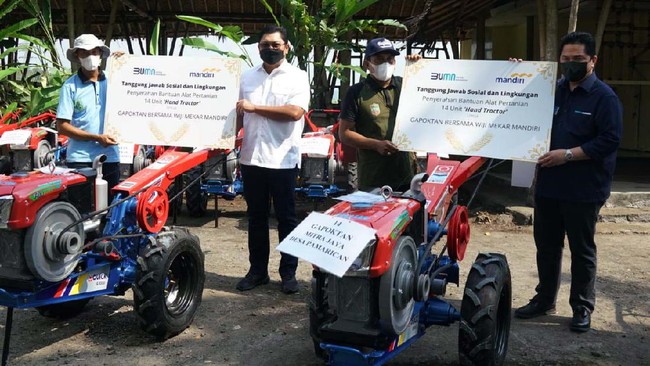 Ciamis - Para petani di Pamarican, Ciamis, mendapat bantuan hand tractor dan hammer mill. Penyerahan bantuan ini dilakukan oleh Menteri BUMN Erick Thohir.