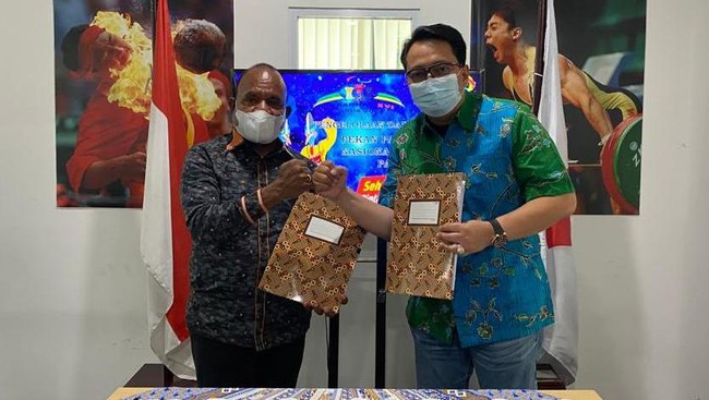 Penandatanganan MoU dilakukan oleh Plt. Direktur LPDUK Firtian Judiswandarta dengan Ketua Harian PB Peparnas XVI 2021 Papua, Doren Wakerkwa di Kantor LPDUK di Jalan Radio I Nomor 13, Jakarta Selatan, Jumat (18/6).