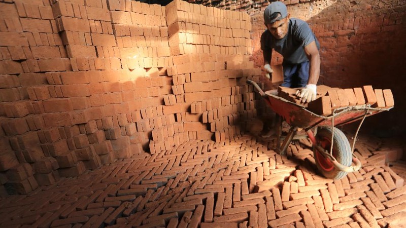 Proses produksi batu bata masih dilakukan secara tradisional.
