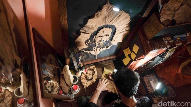 Tangerang Selatan - Hadi Muhammad (24) menyulap daun jati rontok menjadi karya kreatif yang bisa dijual. Pesanan mengalir dari kalangan artis sampai pejabat.