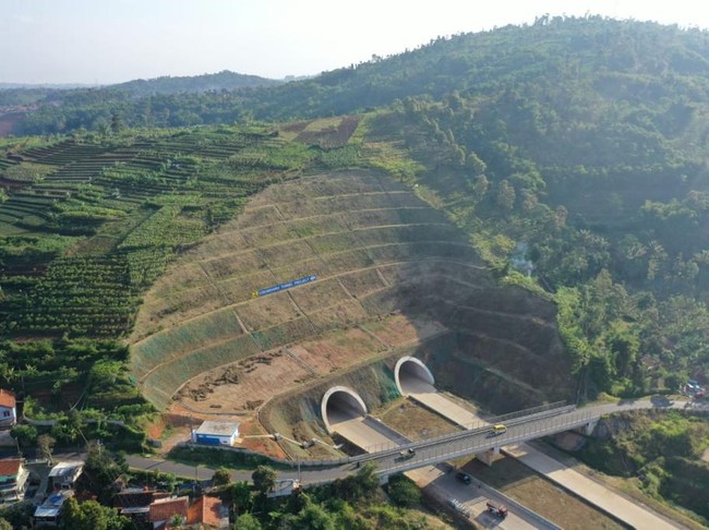 Jakarta - Tol Cisumdawu yang ditargetkan selesai akhir 2021 memiliki terowongan kembar. Intip penampakannya.