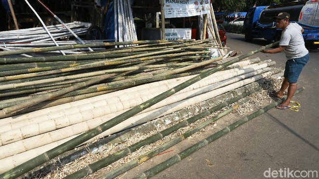 Jakarta - Jelang peringatan HUT Kemerdekaan RI ke-76, yang tinggal satu hari lagi, penjualan atau pesanan bambu panjat pinang untuk Agustusan sepi pembeli.