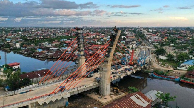 Banjarmasin - Berbagai infrastruktur dibangun untuk menunjang perekonomian di Kalimantan Selatan. Dua di antaranya adalah Bendungan Tapin dan Jembatan Sei Alalak.
