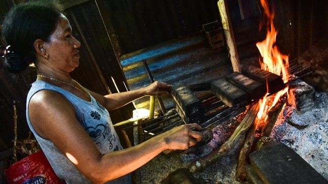 Maluku - Sagu gula merupakan makanan khas Maluku yang berbahan dasar tepung sagu. Proses pembuatannya pun masih dilakukan secara tradisional. Seperti apa pembuatannya?