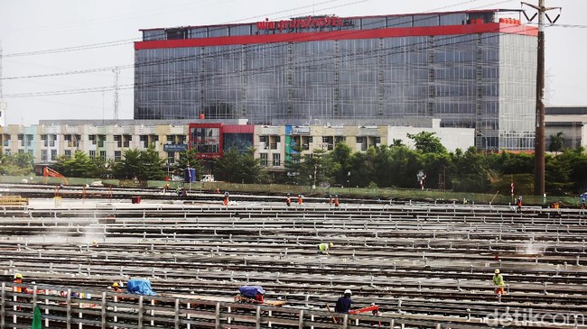 Bekasi - PT Adhi Karya (Persero) Tbk terus melanjutkan pembangunan depo LRT Jabodebek di Bekasi Timur. Begini progres terkini pembangunan depo.