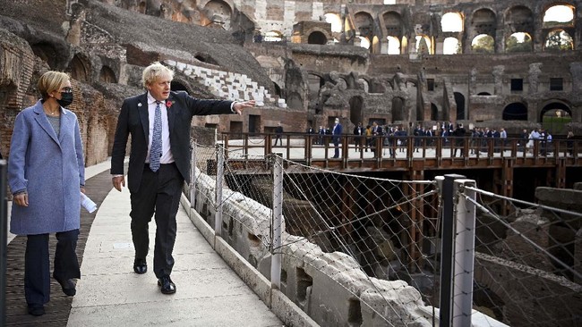 Italia - PM Inggris Boris Johnson mengunjungi Colosseum jelang pertemuan KTT G20. Begini momennya.