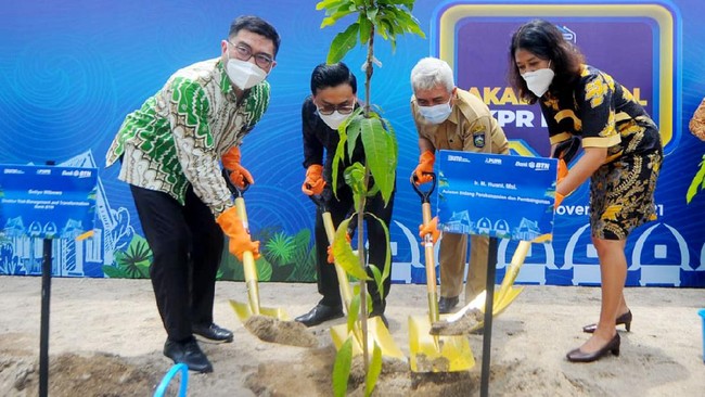Jakarta - Bank BTN terus mendorong pembiayaan rumah berbasis ramah lingkungan dengan melakukan penanaman pohon di kawasan perumahan. Seperti ini