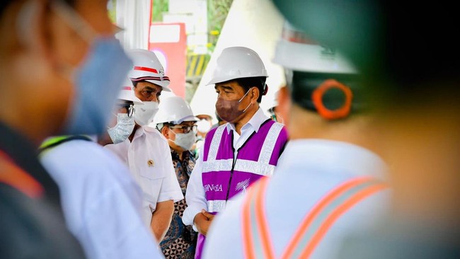 Kabupaten Purwakarta - Presiden Joko Widodo meninjau proyek Kereta Cepat Jakarta-Bandung di Kabupaten Purwakarta. Jokowi untuk melihat langsung terowongan yang dikabarkan terkendala.