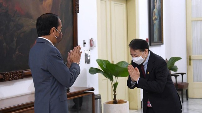 Jakarta - Presiden Joko Widodo bertemu Presiden Bank Pembangunan Asia (Asian Development Bank/ADB) Masatsugu Asakawa. Intip momen keduanya ngobrol di Istana Bogor.