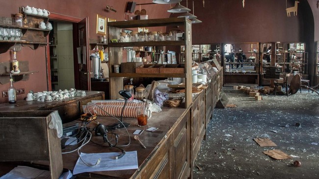 Ukraina - Invasi Rusia ke Ukraina telah menghancurkan roda ekonomi di Kharkiv, Ukraina. Banyak usaha warga hancur terkena tembakan. Salah satunya kafe ini.