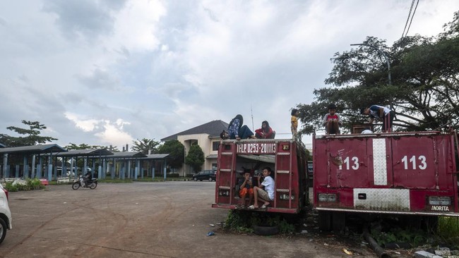 Sejumlah anak bermain di sekitar terminal di Terminal Kadu Banten, Pandeglang, Banten, Kamis (24/3/2022).