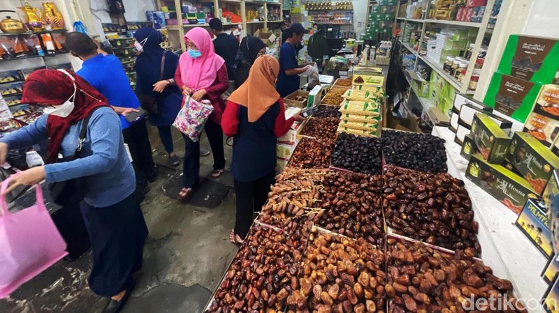 Tak seperti hari-hari biasanya, penjual kurma di pasar tersebut sesak dipadati pembeli.