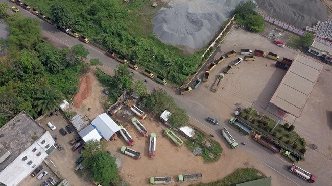 Potret Udara Puluhan Truk Antre Solar di Jambi