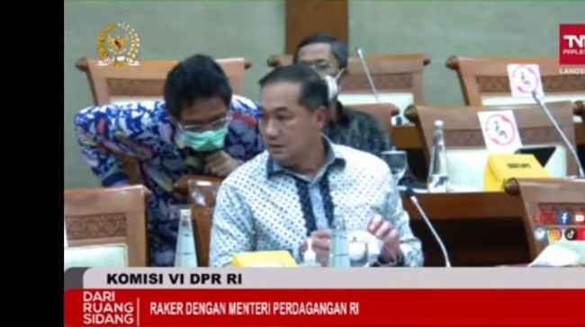 Jakarta - Dirjen Perdagangan Luar Negeri Indrasari Wisnu Wardhana kini tersangka kasus minyak goreng. Intip momen saat dia bisiki Mendag Lutfi soal mafia minyak goreng.
