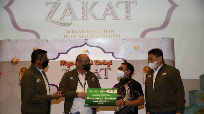 Jakarta - Bank Mega Syariah mengadakan kegiatan Corporate Social Responsibility Mega Syariah Berbagi Zakat 2022 (MSBZ 2022) dengan membagikan paket sembako.