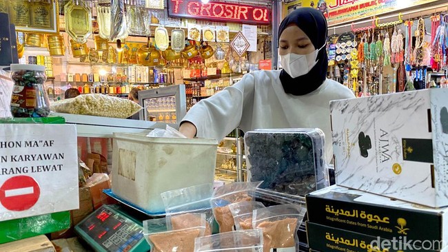 Bandung - Sentra oleh-oleh haji di Bandung kembali bergeliat usai dua tahun terdampak pandemi. Sejumlah warga kembali berdatangan ke sana untuk membeli beragam oleh-oleh.