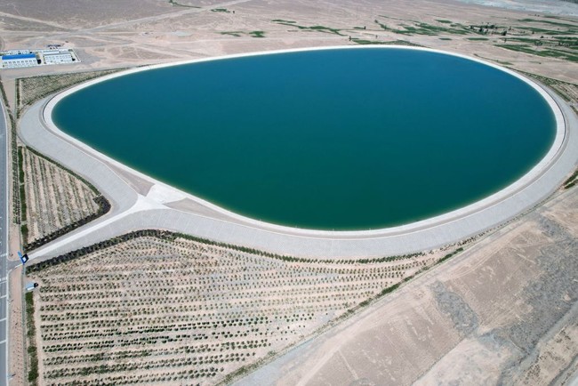 Penampakan Waduk Buatan di Tengah Gurun Gobi yang Kering