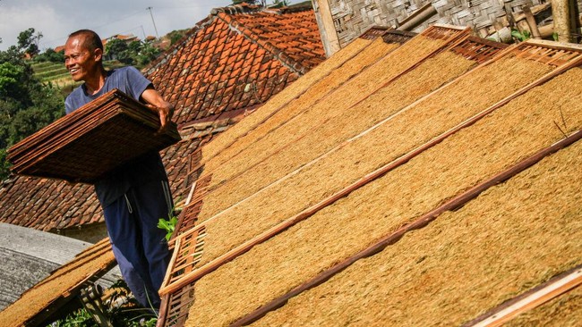 Sumedang - Aroma tembakau begitu khas saat melintas di sebuah desa di Sumedang, Jabar. Tembakau itu mampu menghidupi warga desa dengan penjualan hingga ke luar negeri.