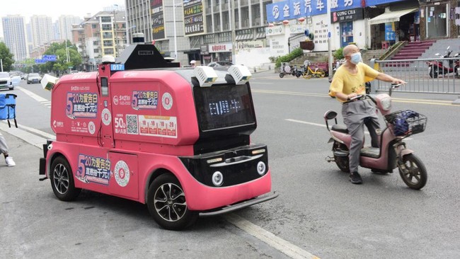 China - China mengembangkan pengiriman paket makanan maupun logistik dengan kendaraan otomatis tanpa sopir. Ia bergerak dalam radius 5 km dari supermarket terdekat.