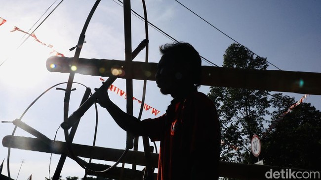 Jakarta - Pedagang pohon pinang yang berjualan di Mamggarai, Jakarta, mengaku kebanjiran pesanan menjelang puncak perayaan HUT Kemerdekaan ke-77 Republik Indonesia.