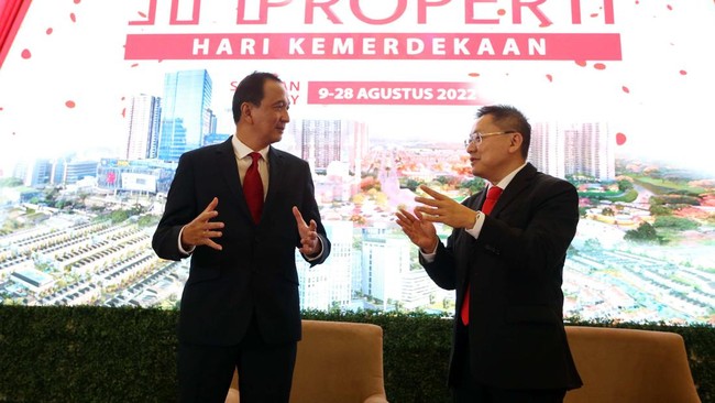 Marketing Director Agung Podomoro Land Agung Wirajaya bersama Presiden Direktur Era Indonesia Darmadi Darmawangsa berbincang dalam Webinar Agung Podomoro 53 Tahun Berinovasi Bangkitkan Industri Properti Menjaga Pertumbuhan Ekonomi, di Senayan City, Jakarta.