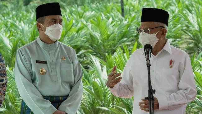 Momen Wapres Ma'ruf Amin Tanam Kelapa Sawit Bareng Santri di Riau