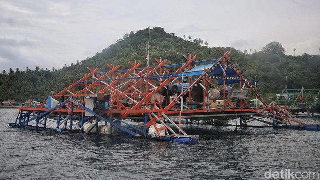 Penampakkan bagan ikan di Kabupaten Kepulauan Anambas, Kepulauan Riau, Rabu (8/8/2022). Bagan terbuat dari bambu yang disusun sedemikian rupa agar bisa mengapung di tengah laut. Biasanya, bagan berbentuk segi empat, sementara di bagian bawahnya dipasang jaring atau waring.
