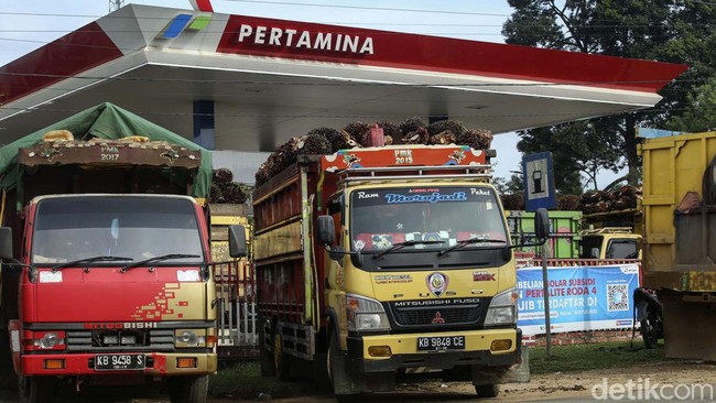 Kabupaten Bengkayang - Kelangkaan solar terjadi di Kabupaten Bengkayang, Kalbar. Akibatnya truk pengangkut kelapa sawit harus antre berjam-jam.