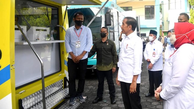 Maluku - Presiden Jokowi meninjau langsung penyaluran Bantuan Subsidi Upah (BSU) melalui ATM pada Mobil Kas Keliling (MKK) Bank BTN di Ternate, Maluku Utara.