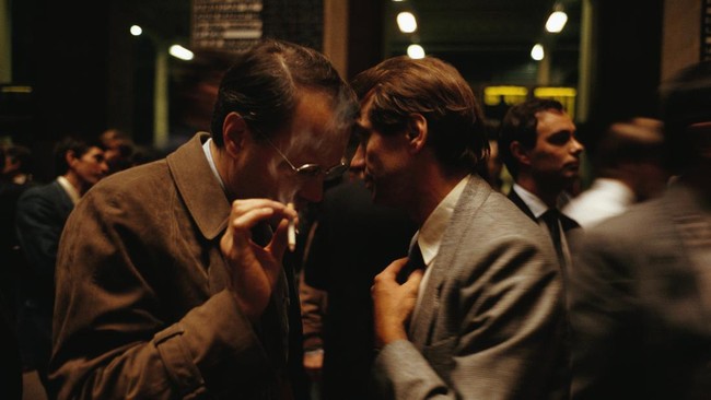 Sejumlah orang terlihat gugup sambil mondar-mandir di Bursa Efek Paris beberapa hari setelah Black Monday pada 19 Oktober 1987. Merosotnya bursa saham ini menjadi yang terbesar sejak Black Tuesday pada tahun 1929.