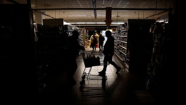 Ukraina - Serangan Rusia yang menyasar fasilitas energi memaksa Ukraina memadamkan listrik untuk menghemat pasokan. Warga yang belanja di swalayan pun gelap-gelapan.