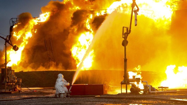Ukraina - Depot minyak di Shakhtarsk, Donetsk, Ukraina, yang diduduki Rusia terbakar. Begini penampakan kobaran apinya.