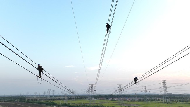 China - Ada banyak pekerjaan yang ada di dunia ini, termasuk pekerjaan yang bisa dibilang menantang maut. Salah satu teknisi listrik pemeliharaan kabel.