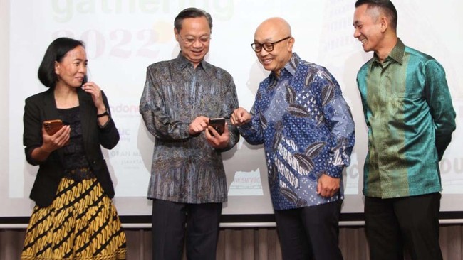 Binawati Dewi, Head of Sales & Tenant Relations PT Suryacipta Swadaya, Johannes Suriadjaja, Presiden Direktur PT Suryacipta Swadaya, Hudaya Arryanto, Managing Director PT Suryacipta Swadaya, Abednego Purnomo, VP Sales & Marketing PT Suryacipta Swadaya berbincang saat peluncuran Suryacipta Mobile Application.