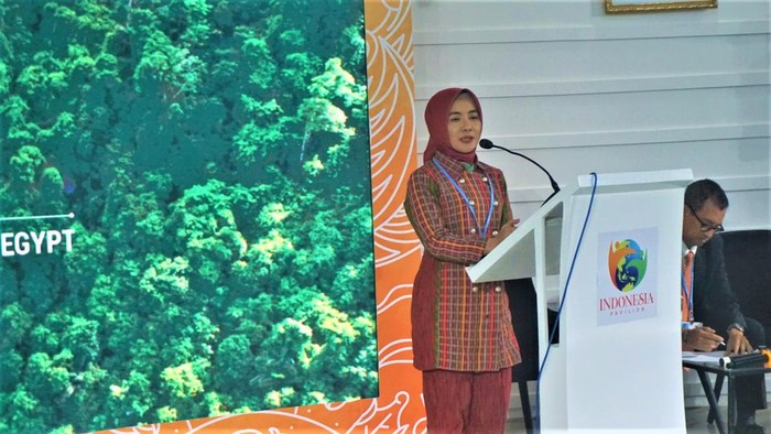 Sharm El Sheikh - Dirut PT Pertamina Nicke Widyawati jadi narasumber Konferensi Perubahan Iklim Dunia, COP27 UNFCCC di Sharm El Sheikh. Nicke paparkan strategi capai Net Zero.