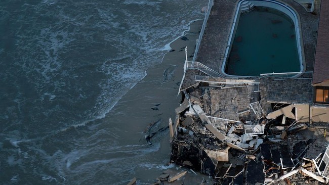 Florida - Florida dihantam oleh Badai Nicole. Akibat dari peristiwa tersebut, sejumlah rumah warga hancur dan jalanan terputus.