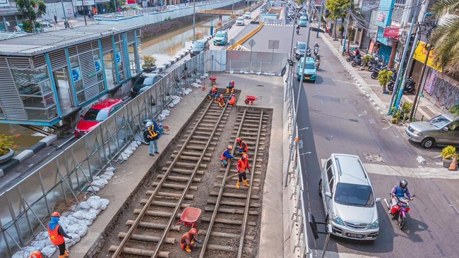 Jakarta - 'Harta Karun' kembali ditemukan di proyek MRT Fase 2, Jalan Gajah Mada, Jakarta. Rel trem itu merupakan peninggalan kolonial Belanda.