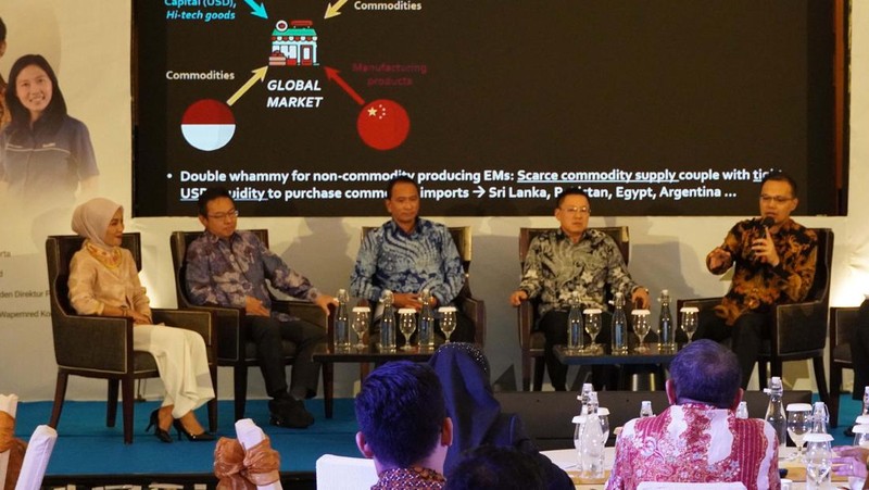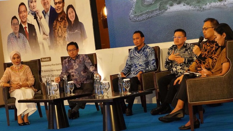 Marketing Director Agung Podomoro Land, Agung Wirajaya, Chief Marketing Officer Bukit Podomoro Jakarta Zaldy Wihardja, Presiden Direktur PT ERA Indonesia Darmadi Darmawangsa m, Kepala Ekonom PT Bank Central Asia (BCA) David E. Sumual, dan CEO & Founder Finante Rista Zwestika, dalam diskusi publik “Optimisme Ekonomi dan Sektor Properti dalam Menatap 2023”, di Jakarta.