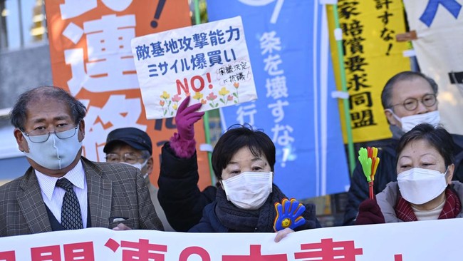 Jepang - Warga Jepang berdemo memprotes peningkatan anggaran pengeluaran militer. Hal itu dinilai akan berdampak signifikan pada kenaikan pajak.