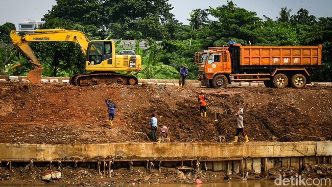 Jakarta - Normalisasi Sungai Ciliwung dikebut di era Pj Gubernur DKI Jakarta Heru Budi Hartono. Salah satu titik yang dikebut berada di belakang Jl MT Haryono, Cawang.