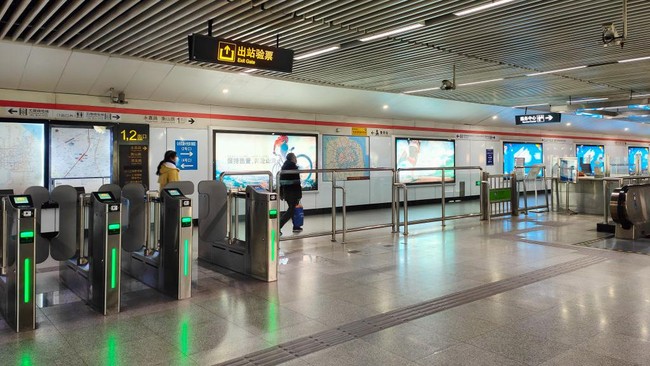 China - Stasiun di Shanghai sepi saat lonjakan kasus COVID-19 kembali terjadi di China. Stasiun yang biasanya sibuk ini pun kini tampak lengang tanpa penumpang.