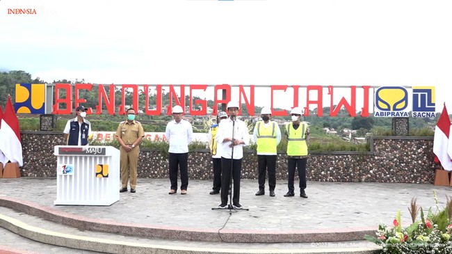 Presiden Joko Widodo (Jokowi) meresmikan Bendungan Ciawi, Kabupaten Bogor, Jawa Barat, Jumat (23/12/2022). Bendungan ini memiliki daya tampung hingga 6 juta m3 lebih. (Dok. Youtube/Sekretariat Presiden)