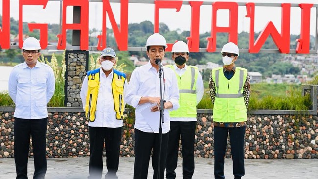 Presiden Joko Widodo (Jokowi) meresmikan Bendungan Ciawi, Kabupaten Bogor, Jawa Barat, Jumat (23/12/2022). Bendungan ini memiliki daya tampung hingga 6 juta m3 lebih.