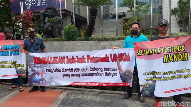 Jakarta - Komunitas Peternak Unggas Nasional (KPUN) unjuk rasa di Kemendag. Demo menuntut sejumlah kebijakan salah satunya harga ayam di kelas peternak yang anjlok.