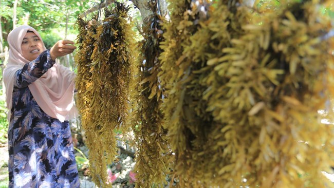 Aceh - UMKM di kawasan pantai Desa Lho Bubon, Aceh Barat, menyulap rumput laut liar menjadi teh herbal lho. Penasaran?