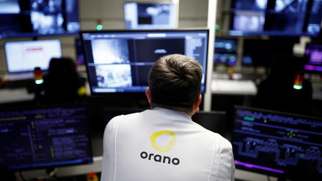 Seorang karyawan bekerja di ruang operasi di pabrik pemrosesan ulang limbah nuklir Orano di La Hague, dekat Cherbourg, Prancis, Selasa (17/1/2023).